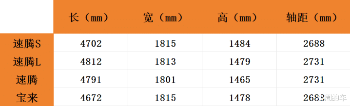 不难看出,虽然被称为速腾S,但该车的尺寸与大众宝来更为接近,两车的车宽和轴距保持了高度的一致,实际的空间体验相差并不会太多,区别只是舒适性配置方面的不同。